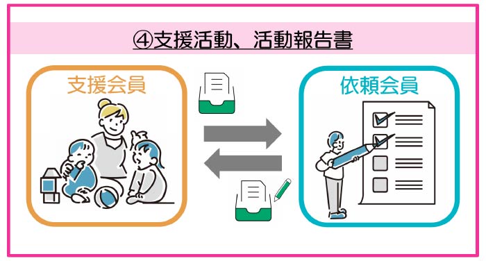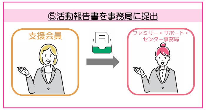 依頼会員に活動報告書へ確認の署名又は押印をしていただき、料金を受け取ります。